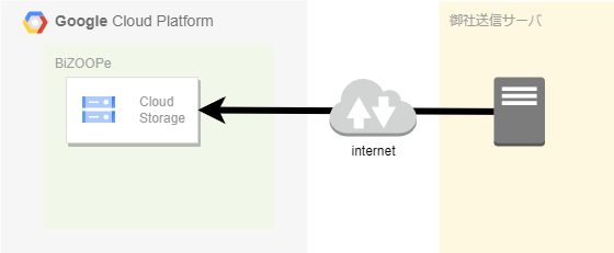 Google が提供するストレージサービス”Google Cloud Storage”(以下GCS)にデータをアップロードいただきます。