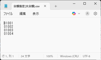 ③で、選択した分類コードのファイル出力が、②で、分類コードのファイル読込が可能です。 ファイルの仕様についてはファイル読込仕様をご参照ください。
